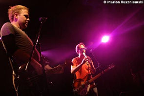 Vous êtesun jeune groupe ; que ressentez-vous d'être chez Dischord qui a déjà une longue histoire ? C : C'est un label avec lequel nous avons grandi et je pense que beaucoup de nos expériences les plus intenses ont été avec les groupes Dischord ou des groupes de la scène de DC. La plupart des groupes que j'ai vu en concert quand j'étais ado à DC étaient chez Dischord. Nous avons grandi avec et en faire partie est un grand honneur mais en même temps, j'espère que nous y apporterons une contribution. Beaucoup de gens nous ont comparé à des groupes de Dischord, comme Fugazi et autres. C'est un compliment mais aussi assez frustrant car j'espère que nous amenons quelque chose de spécial, de différent ou de nouveau. J : J'oublie souvent que le label où nous sommes actuellement est aussi celui avec lequel j'ai grandi. Je ne pense pas souvent au fait que Minor Threat, Rites of Spring, Fugazi étaient ou sont sur ce label. Mais quand j'y pense, whaou, c'est stupéfiant, ils faisaient partie de tout ça ! Mais c'est du passé, je suis content d'en faire partie, c'est un honneur d'être sur un tel label qui édite de la bonne musique depuis 22 ans. C : C'est aussi un grand label car c'est une mine de documents pour la ville. Il relate ce qu'il se passe à DC, pas tout mais pas mal de choses. Quand je pense au contexte de notre intégration au sein du label et à tous ceux qui en font partie, des gens que nous connaissons, des amis, des musiciens de la ville, je me dis que nous faisons partie d'un label très spécifique à une ville. C'est quand même assez unique. Je ne connais pas d'autres labels dédiés à une seule ville. Vous semblez vouloir montrer au public qu'il y a beaucoup de jeunes gens impliqués dans la scène à Washington DC, notamment sur la pochette du premier album Craignez-vous qu'on puisse croire que rien de neuf ne soit arrivé depuis Fugazi ? J : Oui je pense que c'était l'idée de la photo du premier album. C : Oui la pochette du premier album allait dans ce sens. Nous voulions montrer que là-bas, beaucoup de nos amis jouent dans des groupes. Et il y a beaucoup de bons groupes à DC. Je ne pense pas que quand Fugazi décidera de se séparer, tout s'arrêtera, que les groupes poseront leurs instruments. Cela continuera. Actuellement, il y a de bons jeunes groupes, et plus que jamais ! Je pense à Black Eyes, ils sont incroyables, ils ont deux batteries, c'est une musique très intense et belle. Il y a aussi El Guapo qui fait une musique très intéressante. Ils sont nouveaux chez Dischord mais ça fait longtemps qu'ils ont commencé. La première fois que je les ai vus, c'était au collège, ils avaient peut-être 16 ans. Ils faisaient déjà une musique étonnante. Ont-ils joué à Paris, tu sais ? Non, ils n'ont pas encore joué à Paris, malheureusement ! C : Ils sont géniaux. H : Si vous avez la chance de les voir, allez-y, ils sont vraiment super. Ce groupe est vraiment atypique pour Dischord ; c'est le premier groupe qui joue ce style de musique sur ce label. C : Absolument ! Je crois qu'ils viennent un peu briser le mythe consistant à dire qu'il y a un son typique Dischord. Ils sont les seuls à sonner ainsi, et ils sont chez Dischord. C'est votre première tournée en Europe, quelles sont vos impressions ? H : C'est vraiment une expérience incroyable de traverser l'océan, de sentir que les gens s'intéressent vraiment à ta musique. C : Je ressens vraiment le public ici, comme ce soir. Il donne vraiment la tonalité. Le groupe peut jouer, mais le public crée l'ambiance. À Paris, il y avait une superbe puissance, c'était vraiment bien. Aussi, aux States, nous avons l'habitude de tout gérer. John trouve la plupart des dates, nous conduisons nous mêmes, nous connaissons tous les organisateurs de concerts, en fait, nous sommes très impliqués. Donc là, c'est un peu difficile pour nous car nous ne connaissons pas les organisateurs, nous avons un chauffeur qui nous conduit, nous ne savons pas où sont les villes et nous ne parlons pas les langues. En gros, c'est une sorte de choc pour nous de ne pas tout contrôler. Mais bon, nous avons un super chauffeur (Josef) qui se gare n'importe où !!! Ce qui est super, c'est que nous sommes toujours surpris. Nous étions vraiment contents pour vous à Paris car il y avait du monde. Tu sais, quand Bluetip sont venus, nous étions à peine 50 personnes C : Pourtant, ils sont plus populaires en Europe !